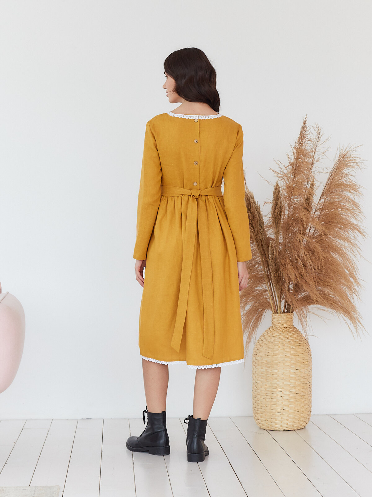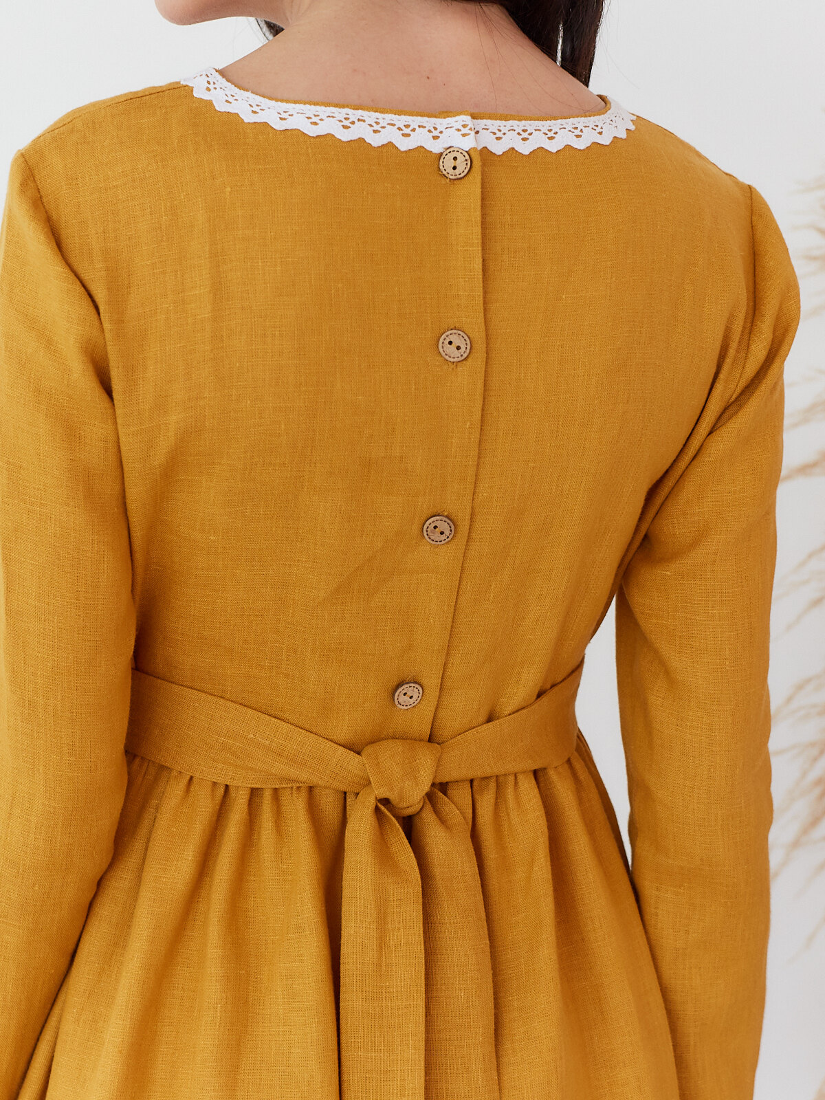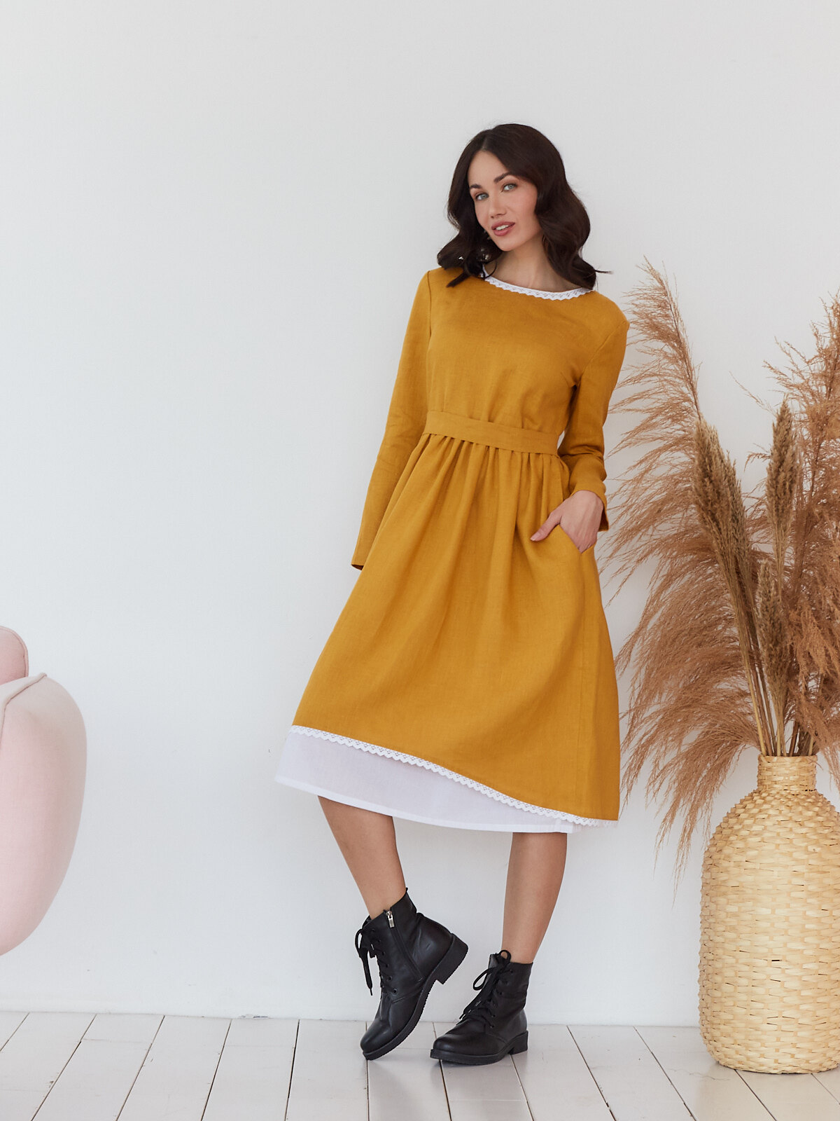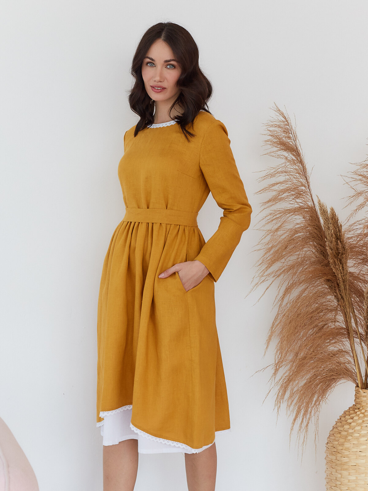 Платье с подъюбником Алиса из горчичного льна