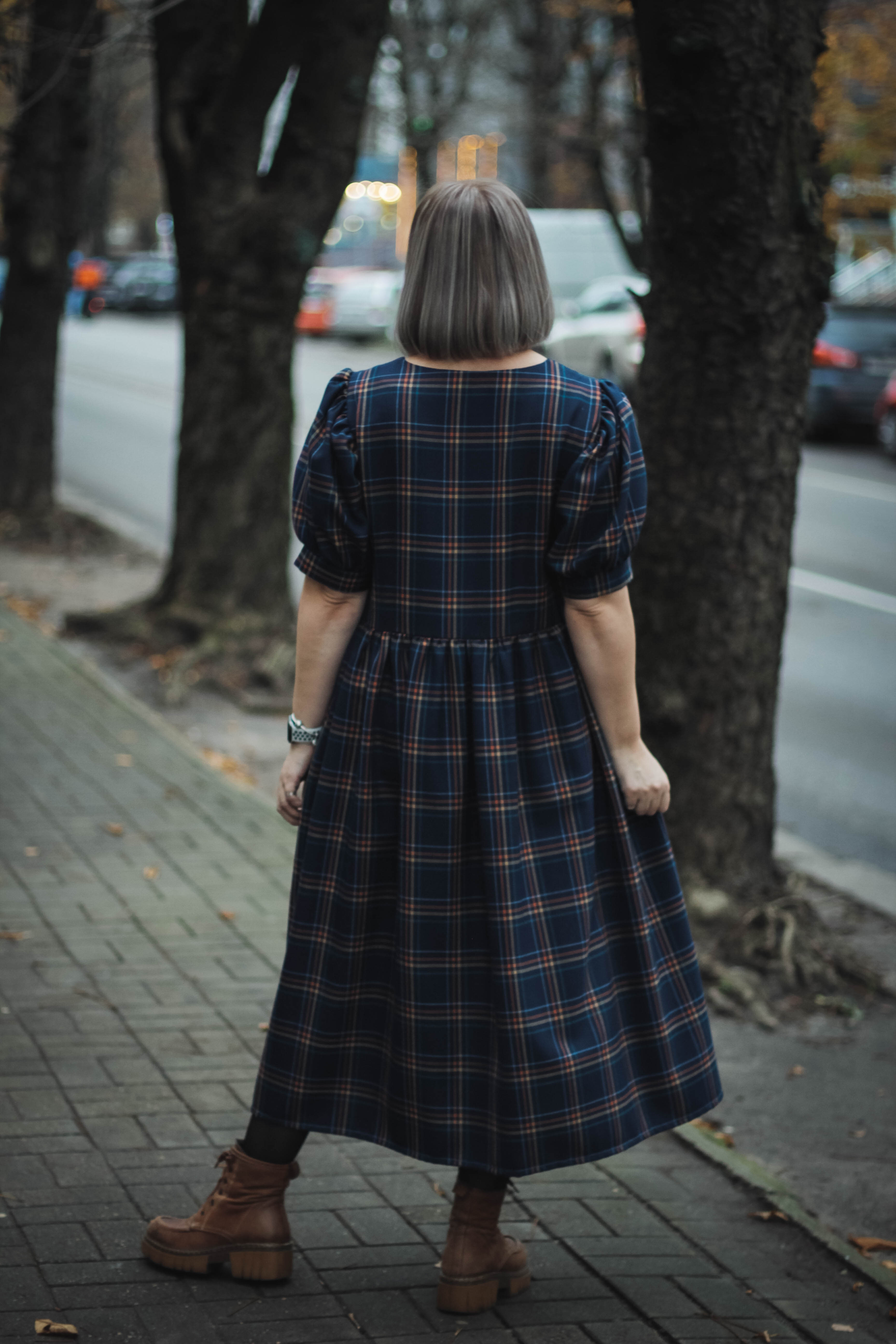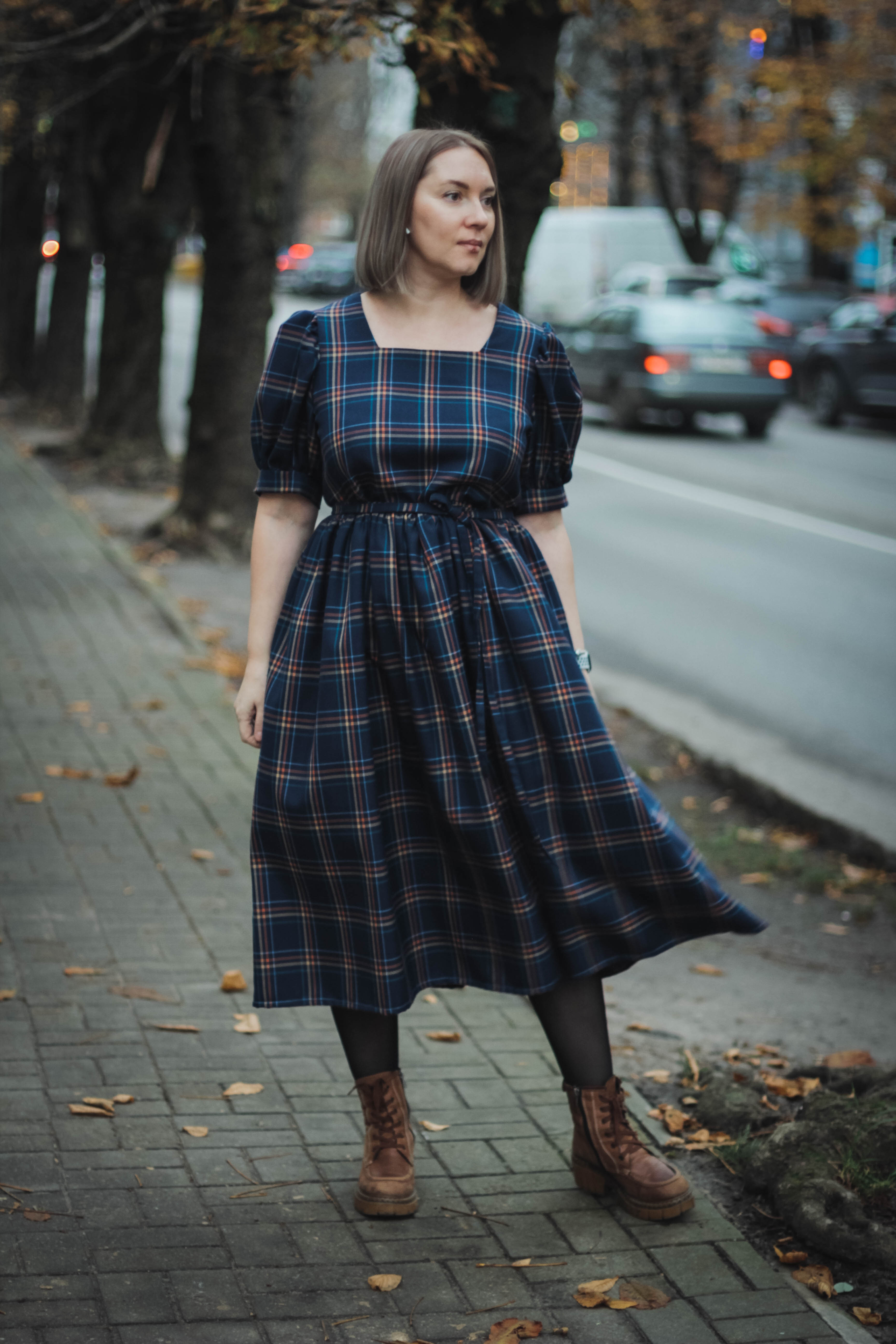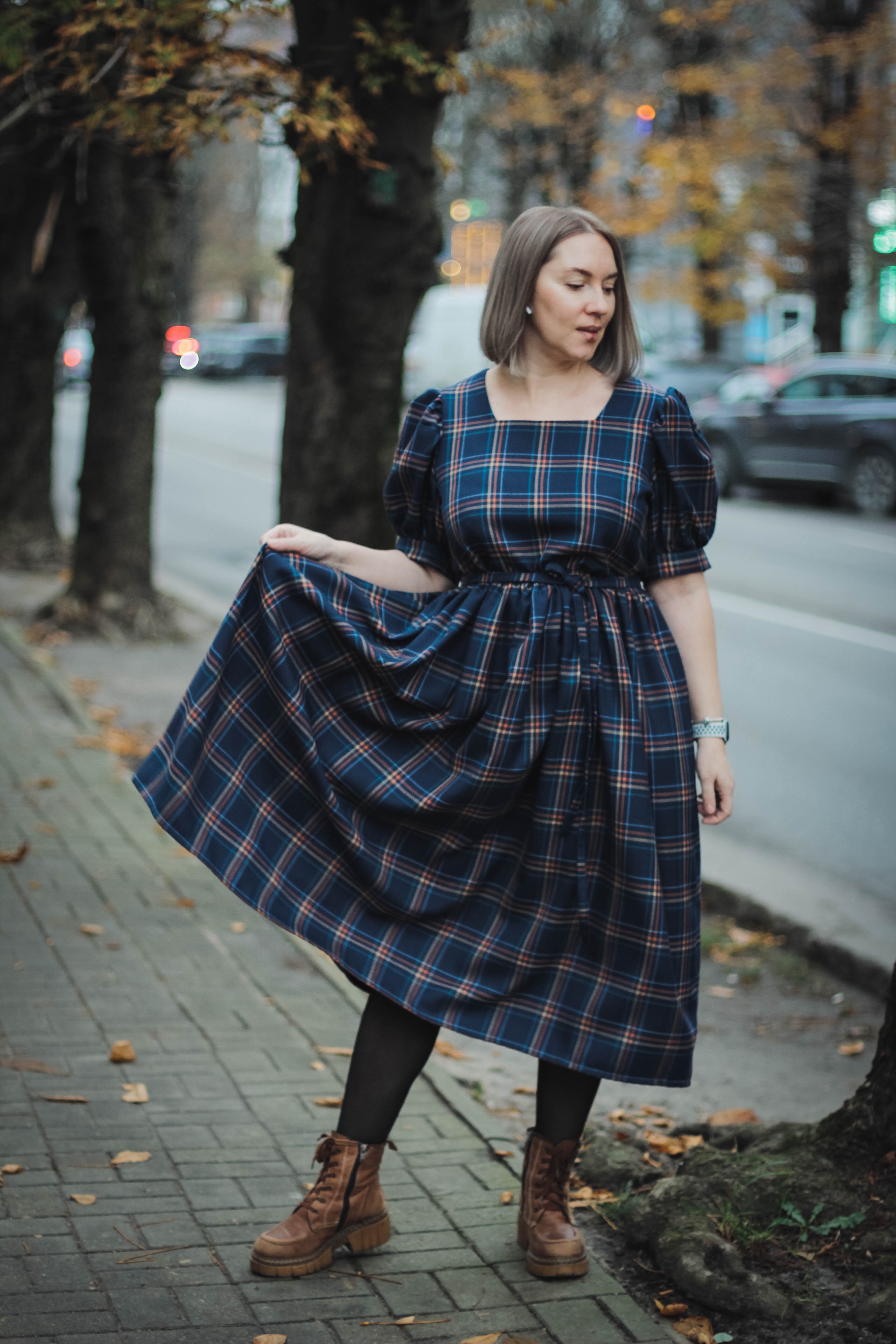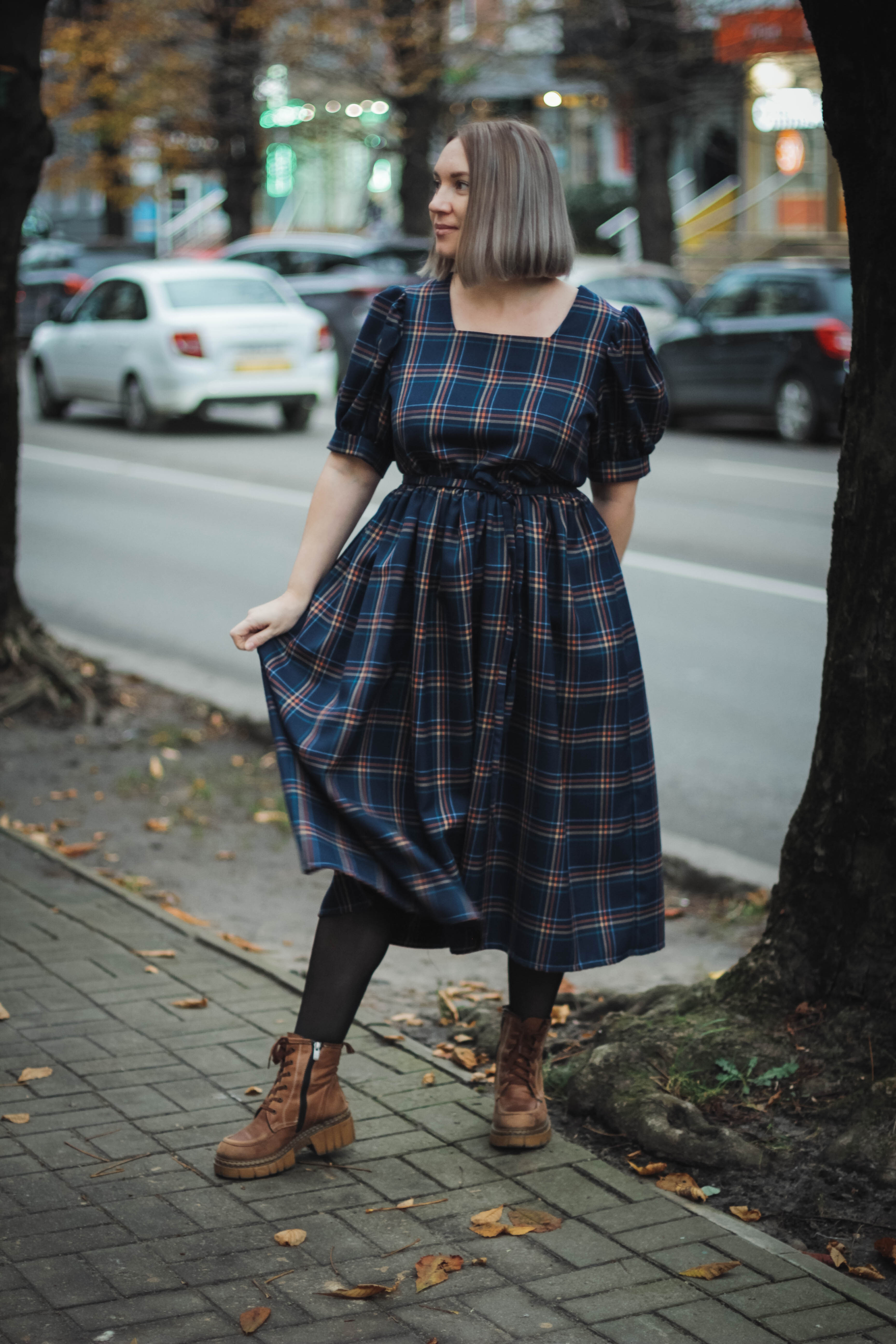 Влюблена в этот крой! Свободный силуэт, который дарит комфорт, и такие милые детали, как эти объемные рукава. Это платье-мечта для стильной осени.
