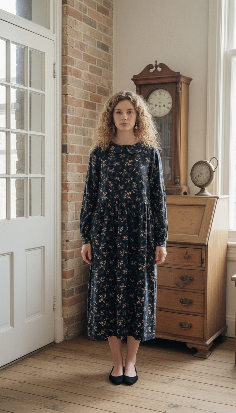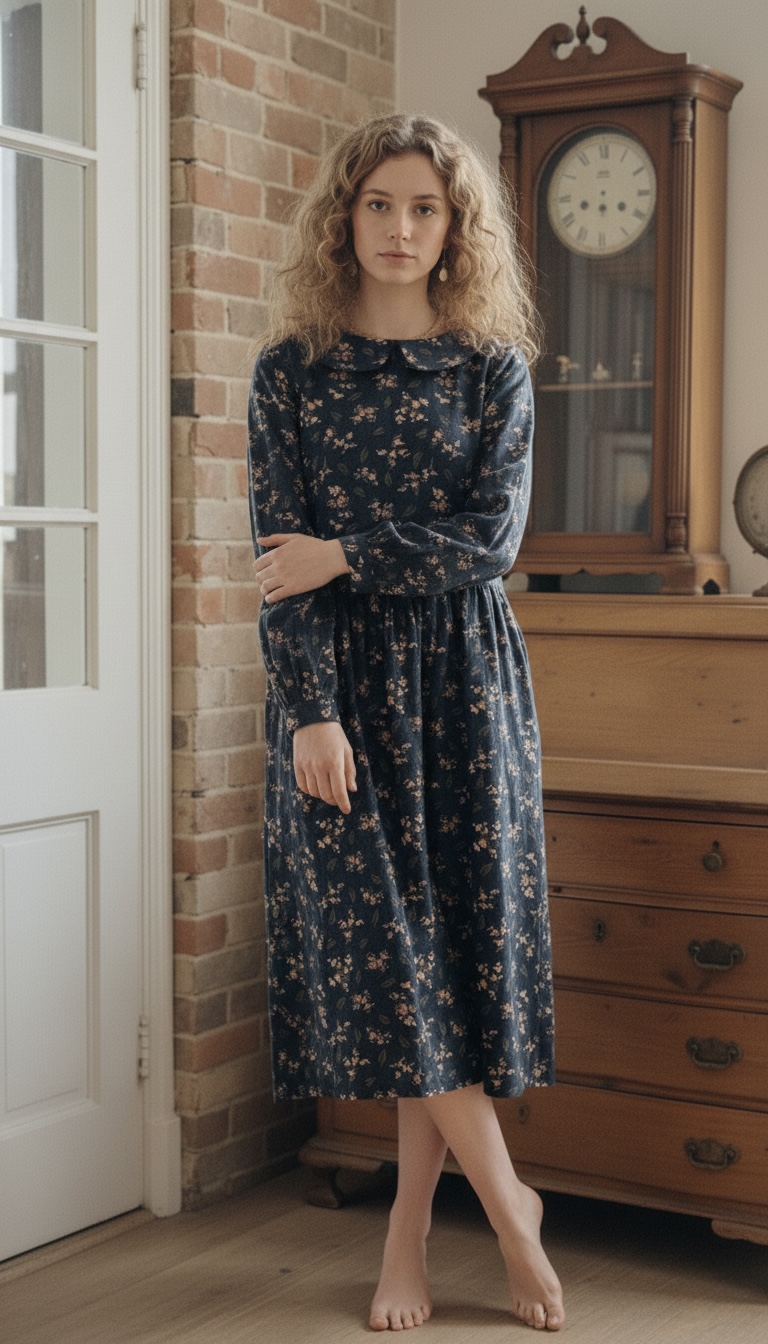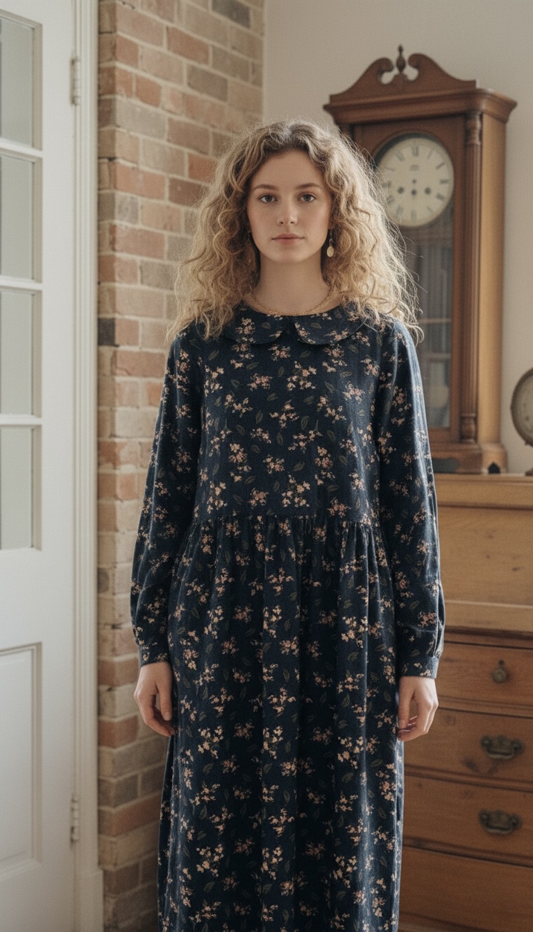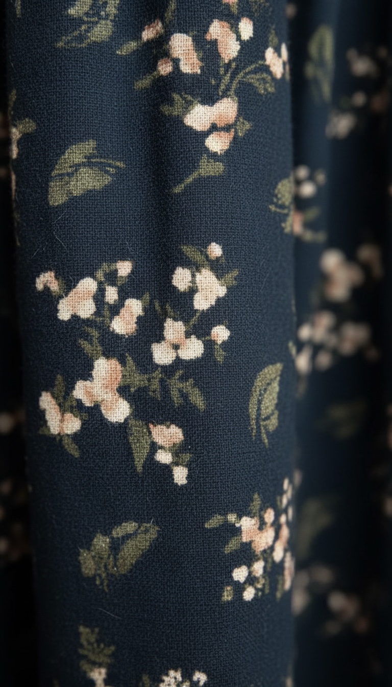Глубокий темный фон платья напоминает о сумерках в лесу или о ночном саде, что настраивает на созерцательный, тихий лад.